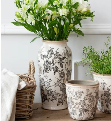 Black Floral Pot Small